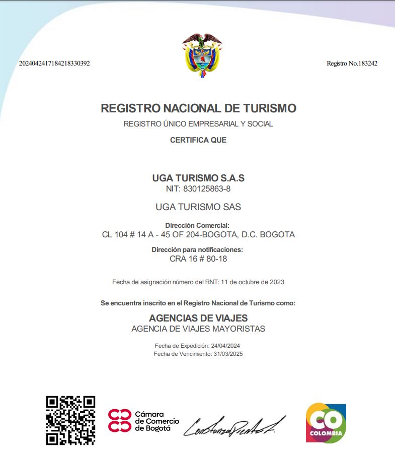 Sobre nosotros UGA TURISMO SAS Mayorista de Turismo con más de 20 años de experiencia en el sector turístico y TRAVELWIN LLC Agencia de Viajes Internacional, pone a su disposición nuestra gama de opciones de viajes como una herramienta de trabajo en el cual le podemos ofrecer servicios garantizados para lograr el mayor bienestar y placer en la realización de los diferentes viajes a todas partes del mundo.